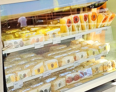 フルーツサンドが数種類あるのに加えて缶ケーキも販売しています。