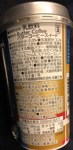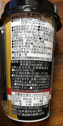 乳等を主要原料とする食品(バター、植物油脂)、コーヒー/乳化剤、カゼインNa、(一部に乳成分・大豆を含む) バターコーヒー